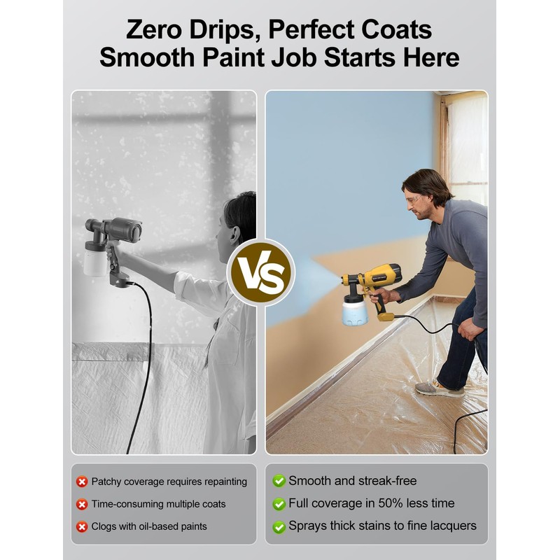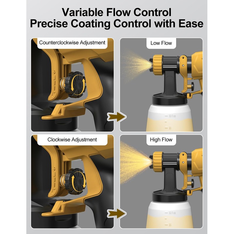 • 【Paint Anything Perfectly】Unlock your home's potential with this versatile sprayer gun: effortlessly handle indoor and outdoor projects—from walls and trim to doors, fences, furniture, and crafts—using most paints like latex, acrylics, or stains. Achieve smooth professional finishes while saving time and money!