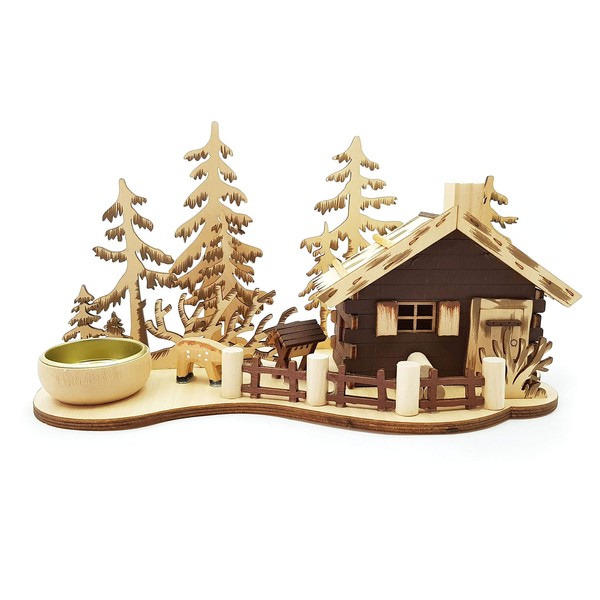 - Lovingly designed tea light holder with smoking house and forest figure