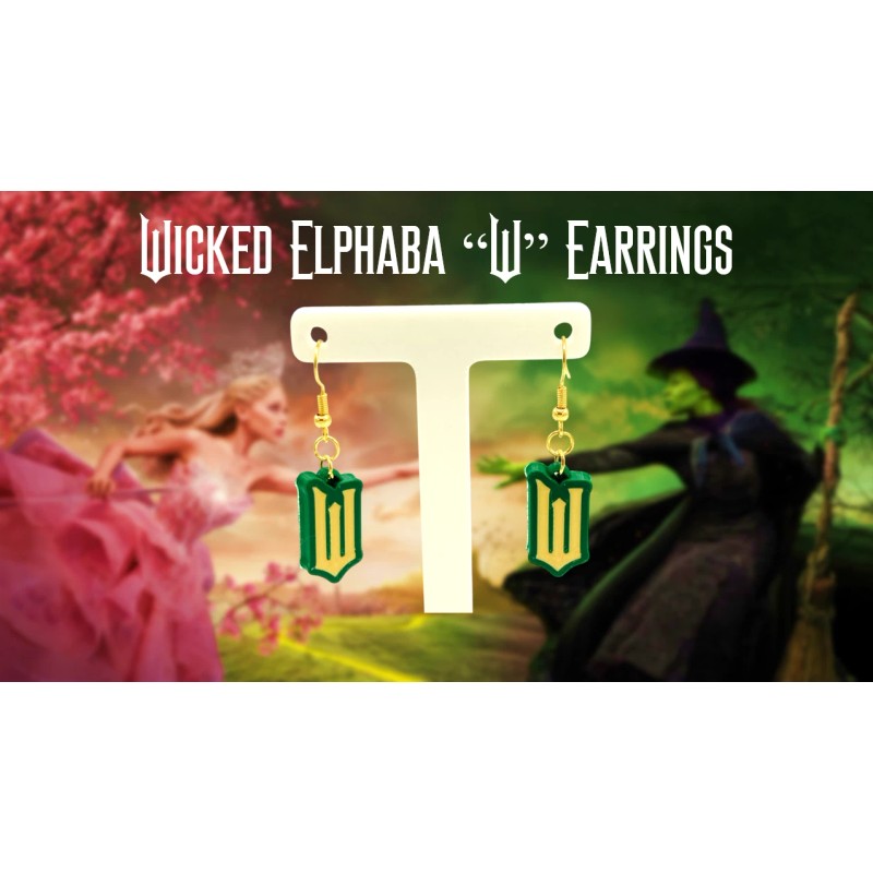 Wicked Elphaba "W" Dangle Drop Earrings 3D Printed