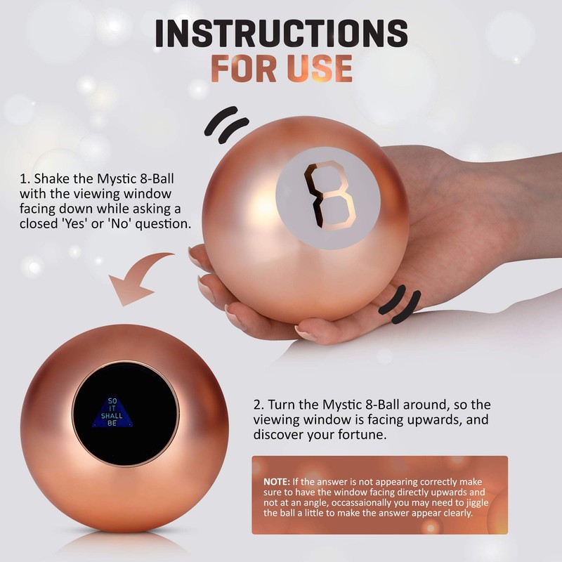 - ASK AND ANSWER - Simply ask any question to the black Magic 8-Ball with the spot side up, and then turn over the mystic gizmo to see its prediction!