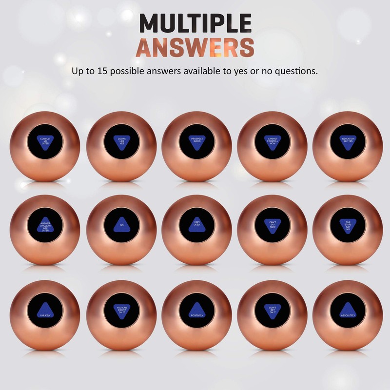 - MULTIPLE ANSWERS - The ball can deliver more than 15 possible answers to your yes or no type questions - "will I be rich?", "will I get a good grade?" etc