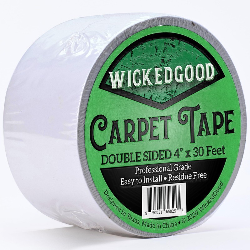 WickedGood Double Sided Carpet Tape for Area Rugs - Heavy Duty Rug Tape w/Strong Adhesive to Keep Rug from Sliding, No Residue Removal, for Indoor & Outdoor Use, Vacuum-Friendly (4" x 30ft, White)