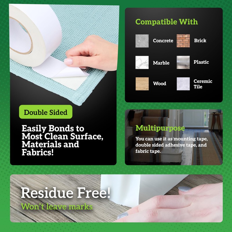 - Multi-Purpose & Durable – Made with commercial-grade adhesive, this heavy-duty rug tape also works as mounting tape, fabric tape, and more.