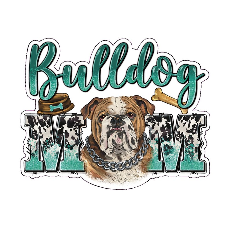 - 5" x 4 inch Bulldog Mom Western Cowhide Decal Proudly Made in the USA