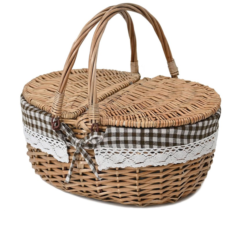 Wicker Picnic Basket with Lid and Handle Sturdy Woven Body with Washable Lining,Coffee Grids