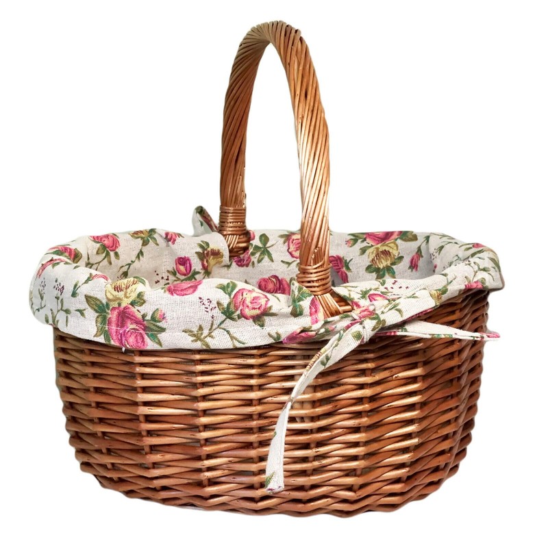 Wicker Shopping Basket 31cm Pink Rose Liner Oval Double Steamed Willow Carry Shopper