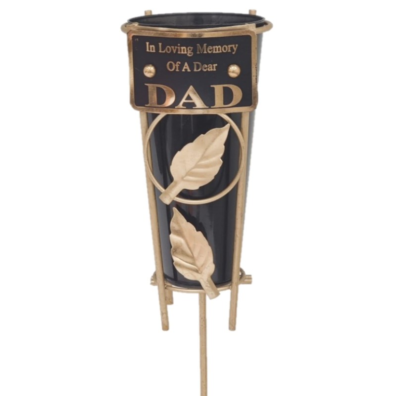 Widdle Gifts Ltd Black Graveside Memorial Flower Vase with Gold Stand - Dad 1829