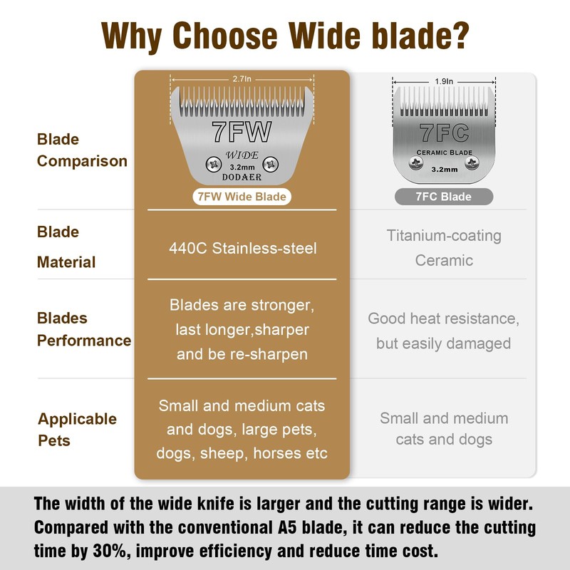 Wide Blades for Dog Grooming,Compatible with Andis,Oster A5,Wahl km10 Dog Clippers,(Silver, 7FW-3.2mm)