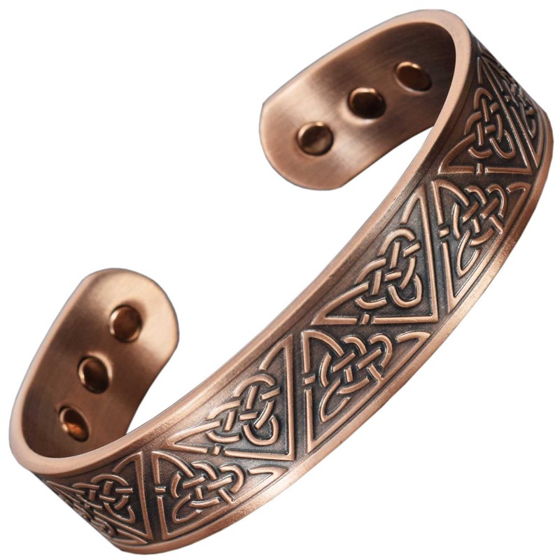 - Experience the Power: Ditch the pills and discover the advantages of our copper magnetic bracelet today! This stylish copper cuff features 6 strong neodymium magnets, each rated at 3,500 gauss and specifically designed to effectively target wrist aches and discomfort.