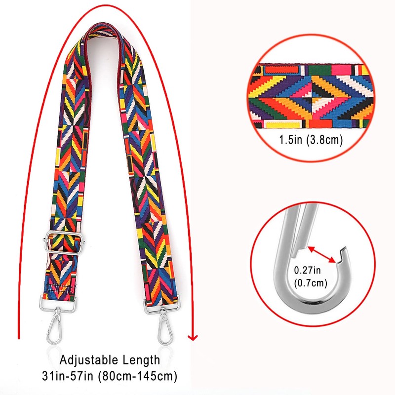 Wide Shoulder Strap Adjustable Replacement Belt Guitar Style Cross body Handbag Purse Strap (Silver Hook-Colorful)