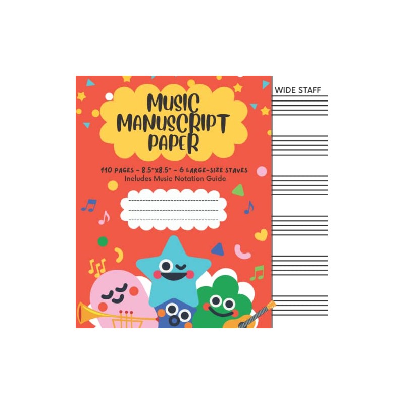 Wide Staff Music Manuscript Paper (Red Cover): Blank Sheet Music Notebook | Music Writing Notebook for Kids | Music Composition Book | Music Staff ... 6 Staves Per Page | 8.5" x 8.5” | 110 Pages