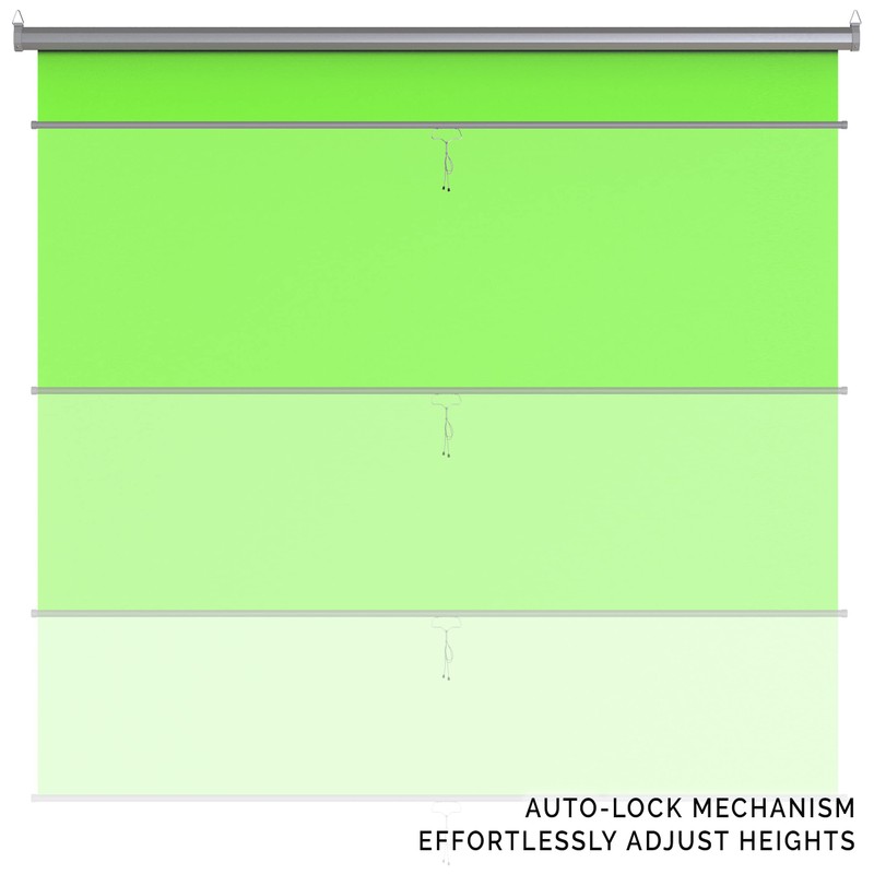 - ✅ Height-Adjustable Collapsible Green Screen Background With Auto-Lock Mechanism: This portable backdrop is super-easy to use with a built-in pull-down lanyard and an auto-locking mechanism allowing you to instantly release the screen at the desired height.