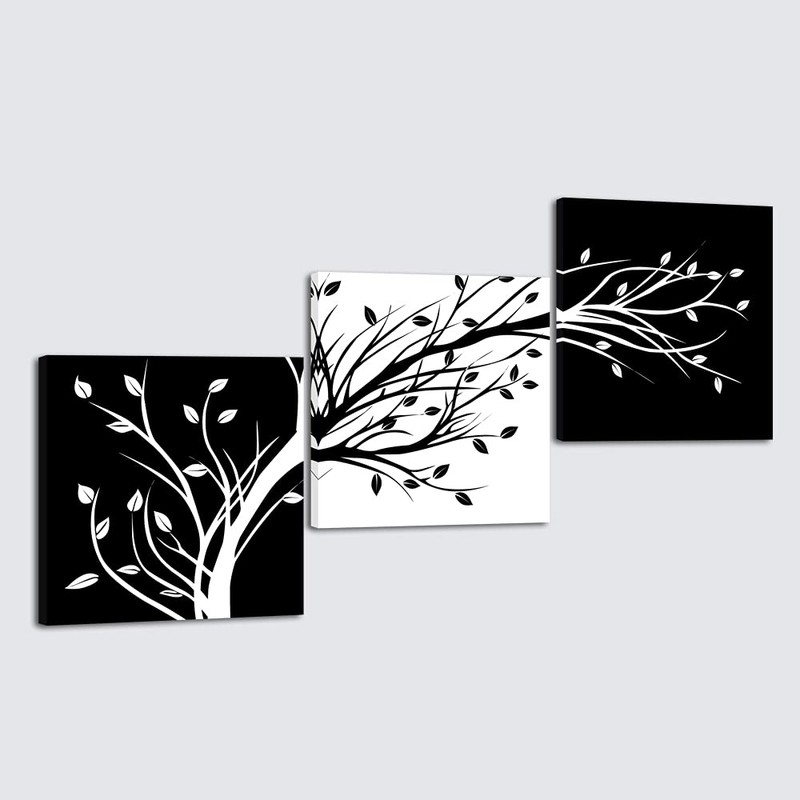 - 3 pcs gallery wrapped black and white decorative flowers canvas paintings wall art prints ready to hang for home decorations wall decor. Each panel has a black hook already mounted on the wooden bar for easy hanging out of box.