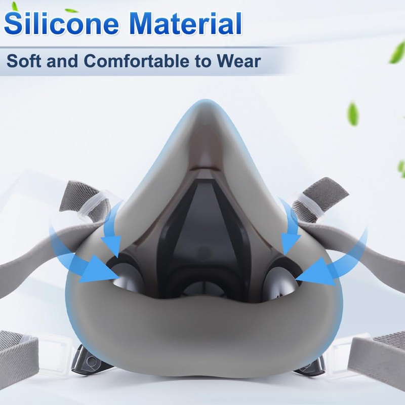 Wiederverwendbare atmungsaktive Maske mit 10 Filtern - Atemschutzmaske Halbmaske für Holzbearbeitung, Schweißen, Polieren und Arbeitsschutz