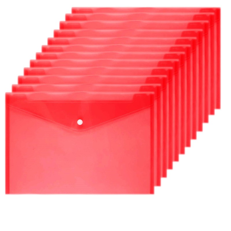 Wiekyze Poly Envelope 12 Pcs Document Envelopes with Snap Button Quality Clear Document Folder for A4 Size (red)