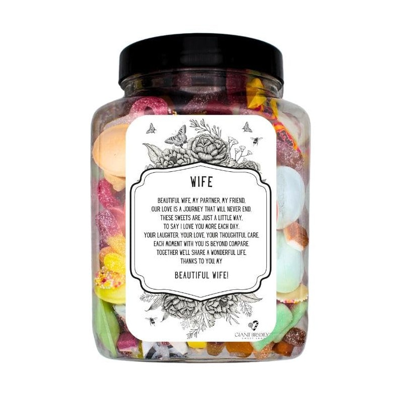 A wonderful gift for that special someone at any time of year. The jar can be filled with any of the sweets shown in selection.