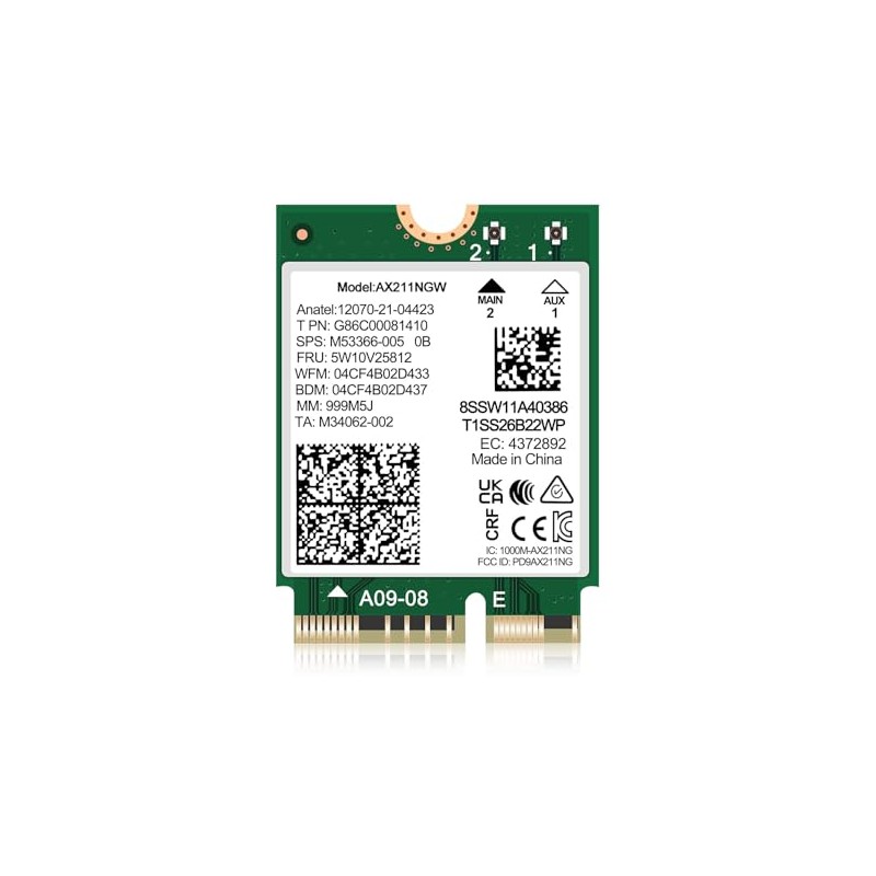 WiFi 6E Wireless Card Intel AX211 NGW M.2: CNVio2, Bluetooth 5.3, Tri-Band 5400Mbps, Network Adapter for Laptop Support Windows 10/11 (64bit), Linux, Chrome OS. Only Available with Gen Intel 12+ CPU