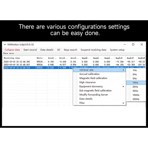 f. The data output frequency 10Hz (mobile app), 200HZ(PC software)