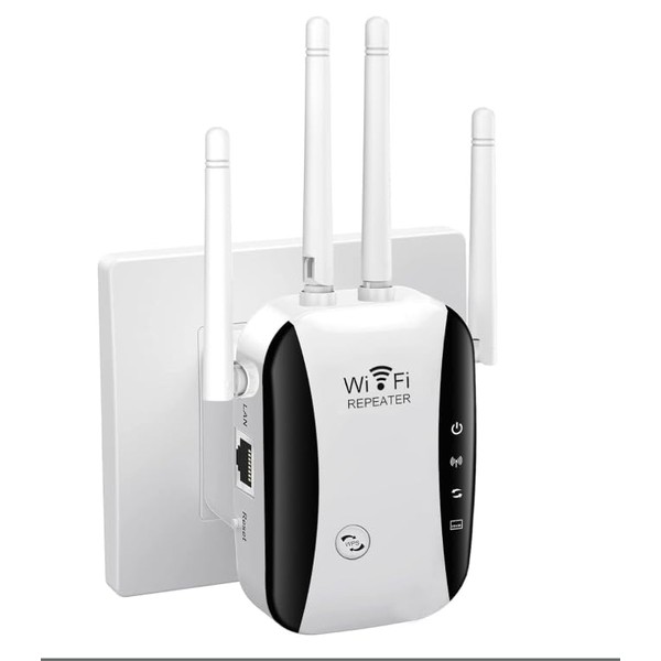 WiFi Extender Booster 4 Antennas Up to 5000 Sq.ft and 50 Devices WiFi Repeater, Wireless Internet Repeater with Ethernet Port 1-Click Setup, Access Point UK plug - White