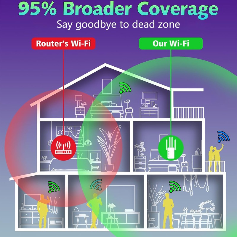 - 【Super Signal Coverage】High Speed and High range coverage to boost the wireless coverage in all WLAN networks ,Extend WiFi signal to dead zone,create a stronger signal with transmission rate up to 300Mbps. You can online games, video conferences and even play 4K high-definition video anytime and anywhere at home