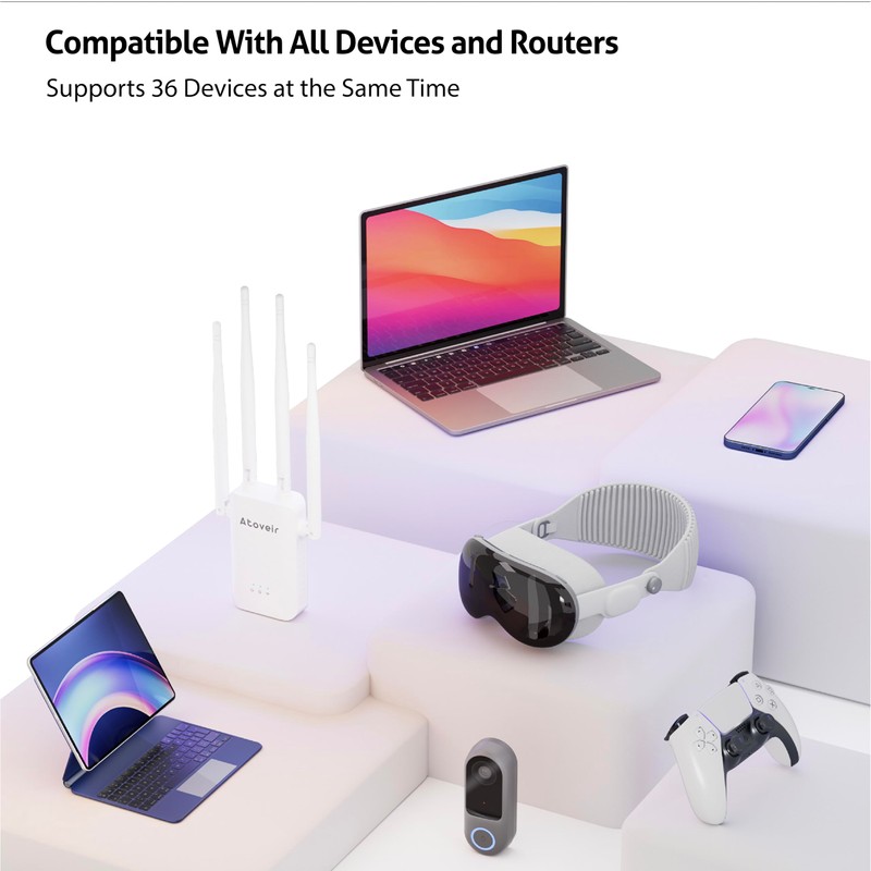 - Works with All Devices– Compatible with all routers and internet devices, Atoveir WiFi booster makes working, social media, and streaming music effortless. Say goodbye to dropped connections and enjoy worry-free online experiences