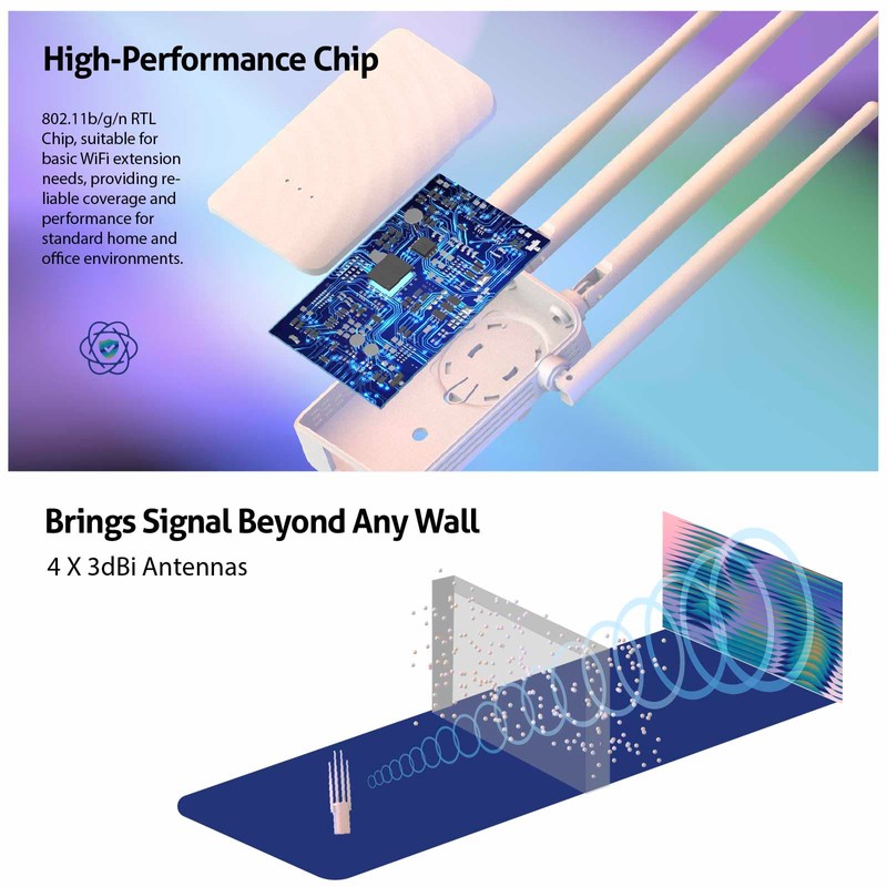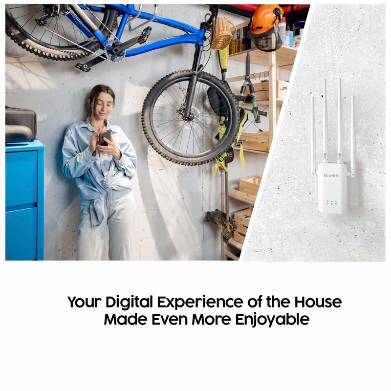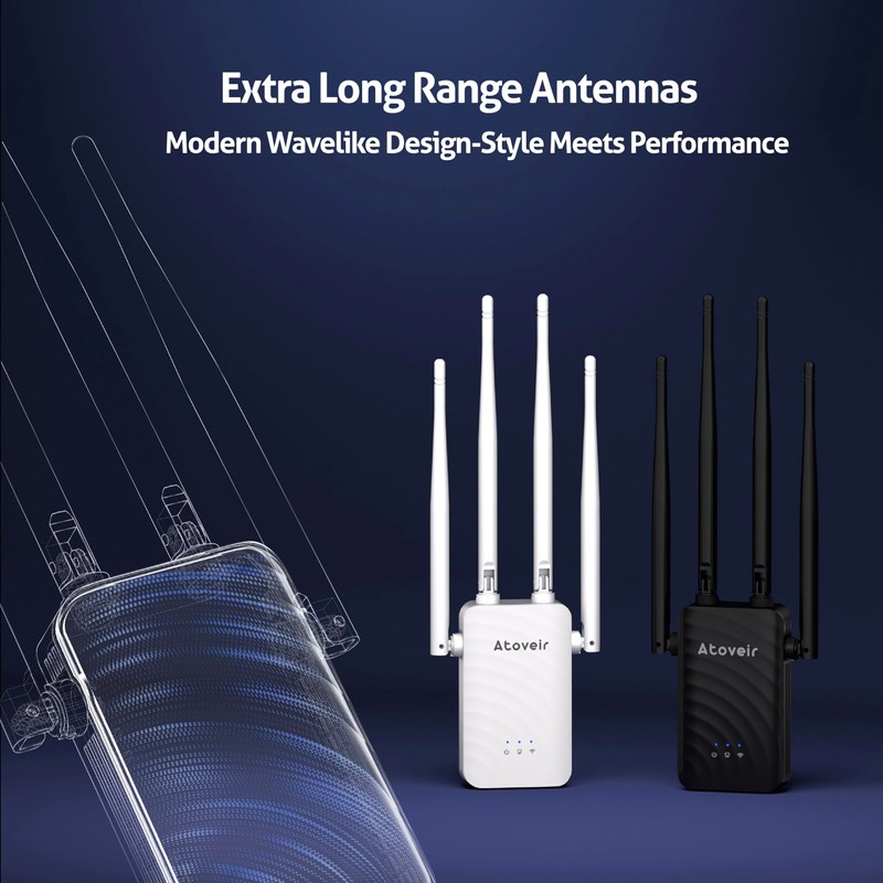 - Style Meets Performance- The Atoveir WiFi range extender features a sleek 1.89-inch design and four extra-long 3dBi antennas, setting it apart with both style and performance. Atoveir delivers a strong, consistent signal- perfect for use indoors or outdoors in courtyards and gardens. Its compact, plug-and-play design fits neatly into any wall outlet