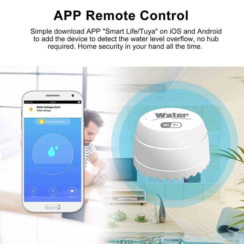 - đĄăAPP Remote ControlăSimple download APP "Smart Life/Tuya" on iOS and Android to add the device to detect the water level overflow, no hub required. Home security in your hand all the time.