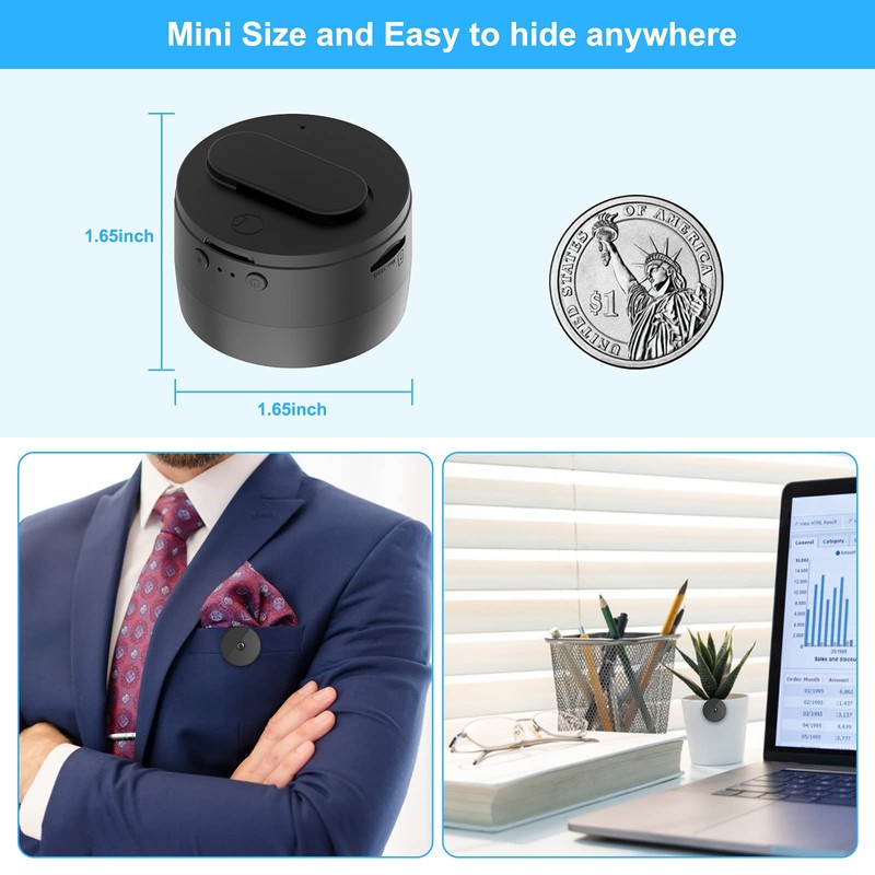 - Night Vision: Infrared capability allowing for night recording in black and white, you can see clear Pictures & Videos in the dark. Small size as 1.69x1.69x0.9 inch, you can install it to anywhere you want or take it with you anywhere.