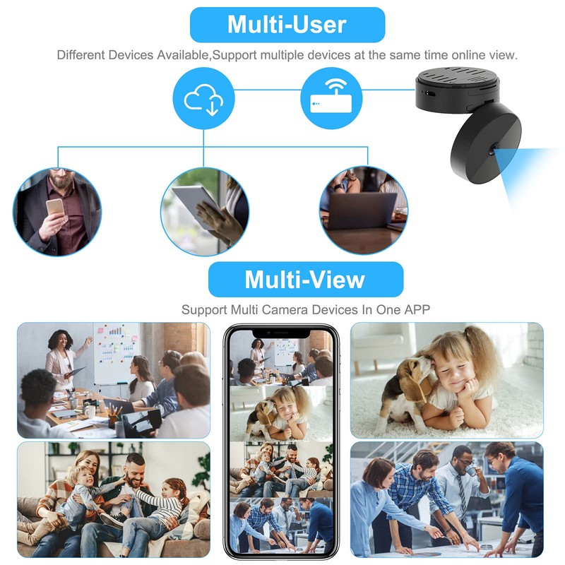 - Strong Function: Mini camera can be connected to WiFi for real-time monitoring, or it can be used without connecting to WiFi or downloading any apps. It supports to take videos/snapshot and save recording to SD card automatically, it’s convenient for starting or stopping to save recording to SD card, the capacity of SD card is up to 128G (SD card do not contain in the package)