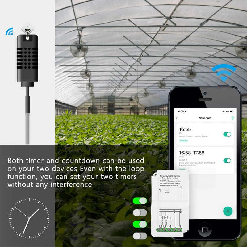 WiFi Temp Humidity Switch Module, Smart Thermostat Controller 50cm Cable with Probe for Greenhouse Indoor