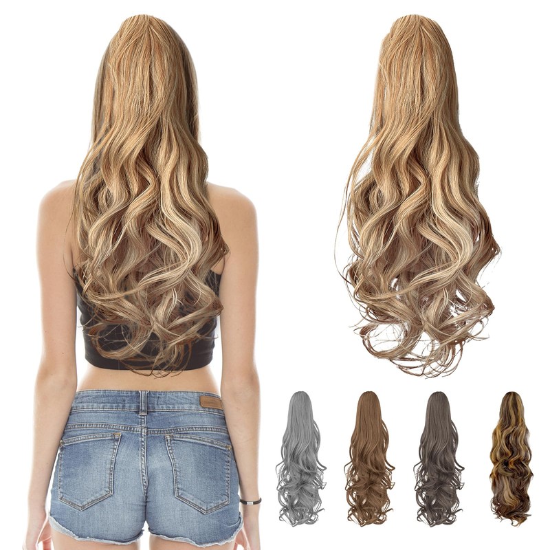 Wig Hairpiece Ponytail Claw Clip Extensions Ponytails Synthetic Hair Pieces Tinsel Long Curly Natural Looking Wavy for Women girls (Ash Blonde)