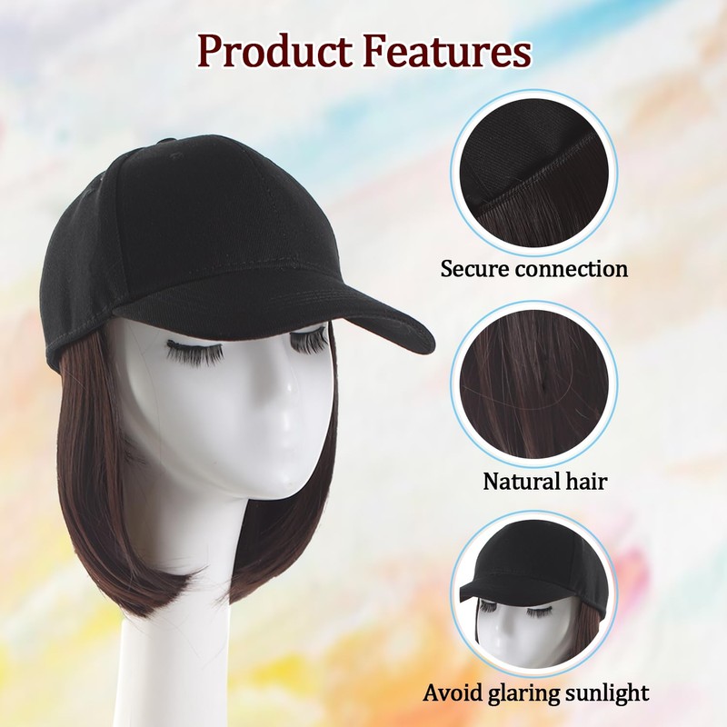 - Baseball cap with hair attached: Hat wig comes in handy in many occasions. Especially when you are in a hurry and need to leave quickly. Hat with hair is easy to wear and walk. Don't worry about direct sunlight when you wear this wig hat for shopping or outdoor activities. This hat wig for women is perfect for daily casual wear. Very suitable for concerts, themed parties, weddings, dates, and role-playing. This hat with hair attached for women is also a great gift for friends or family.