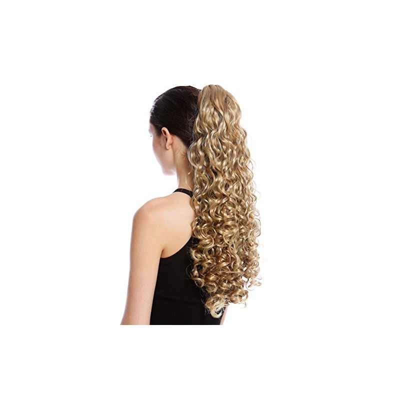 - Very long, voluminously curled ponytail with tight claw grip. Available in various colours: this here is champagne coloured hue of blond.
