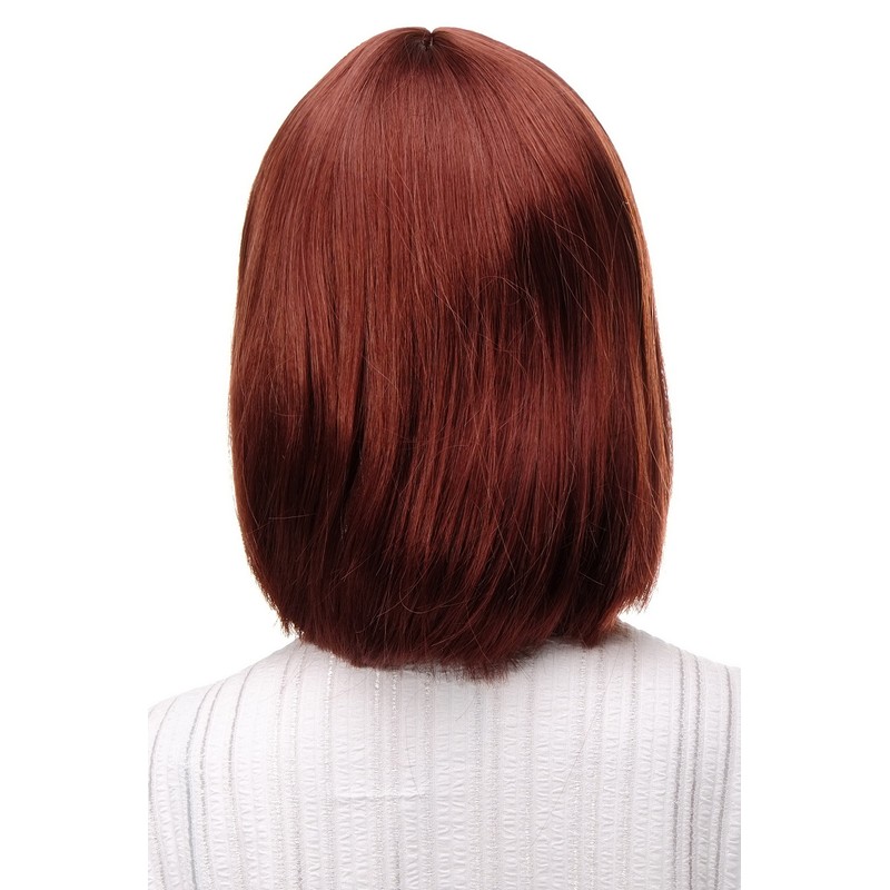 - High quality lady wig in currently very fashionable and sought after Longbob style. The wig has a length von approx 10 inches and also features super sexy cut bangs. Colour: redbrown/rustbrown Standard: 35