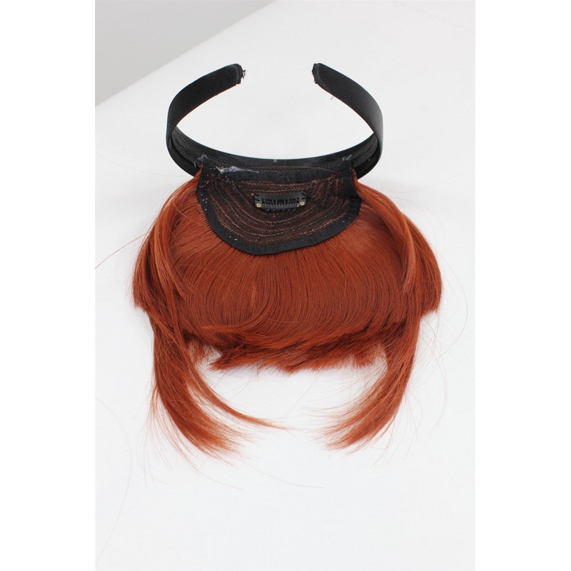 - Red clip-in fringe with longer side hair made of high-quality synthetic fibre - attached to a headband, this fringe nestles particularly easily and naturally to your own hair. Colour code: 350