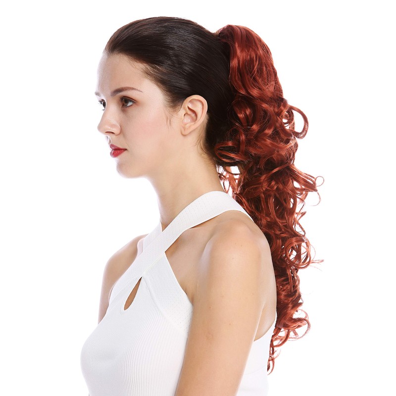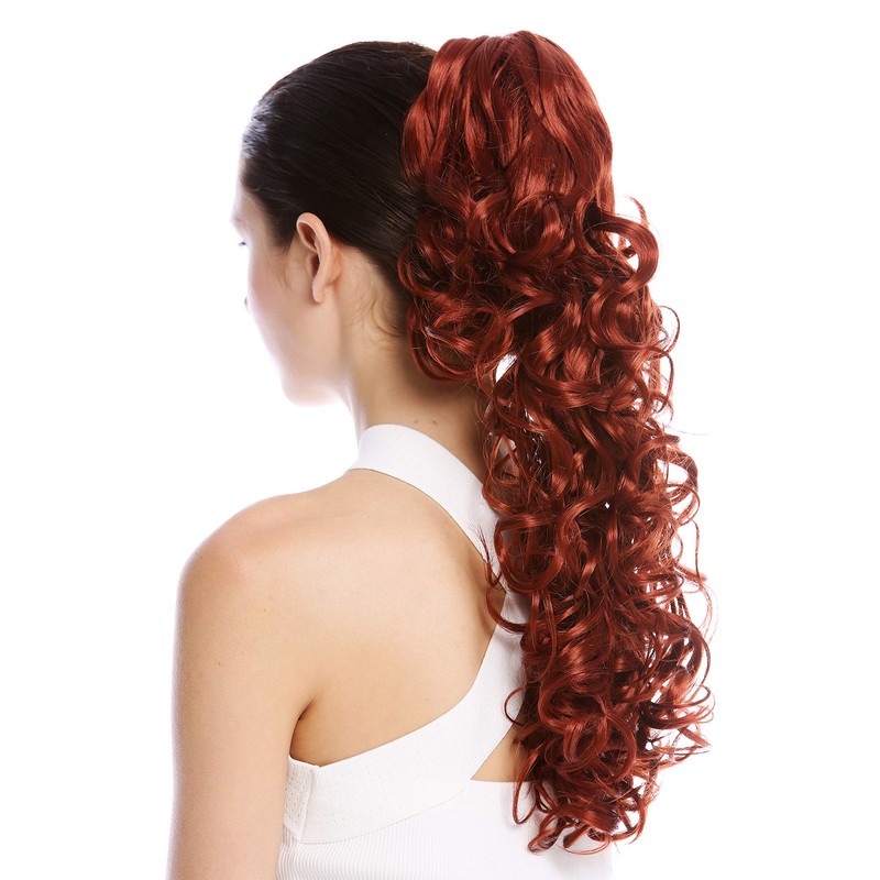 WIG ME UP - N956-V-350 Ponytail Hairpiece Extensions optional Combs & Clamp long voluminous curled curls dark copper red 20inch