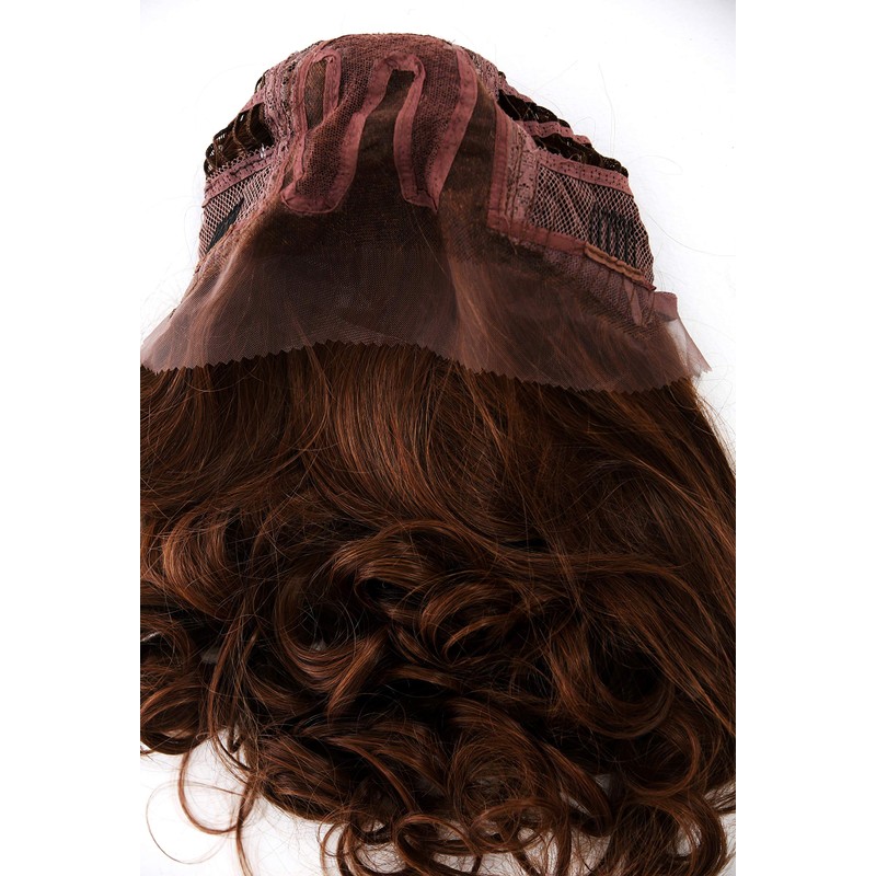 - Especially high-quality and elegantly styled women's wig - the long hair is in a lively highlighted blend of copper blonde (27), chestnut brown (30) and medium brown (6). The hair runs from smooth roots to beautifully shaped curls in the tips. The film set (lace front) and large parts of the wig cap are elaborately hand-knotted for a high level of comfort and a natural effect. Three narrow monofilaments allow the wig to part very individually.