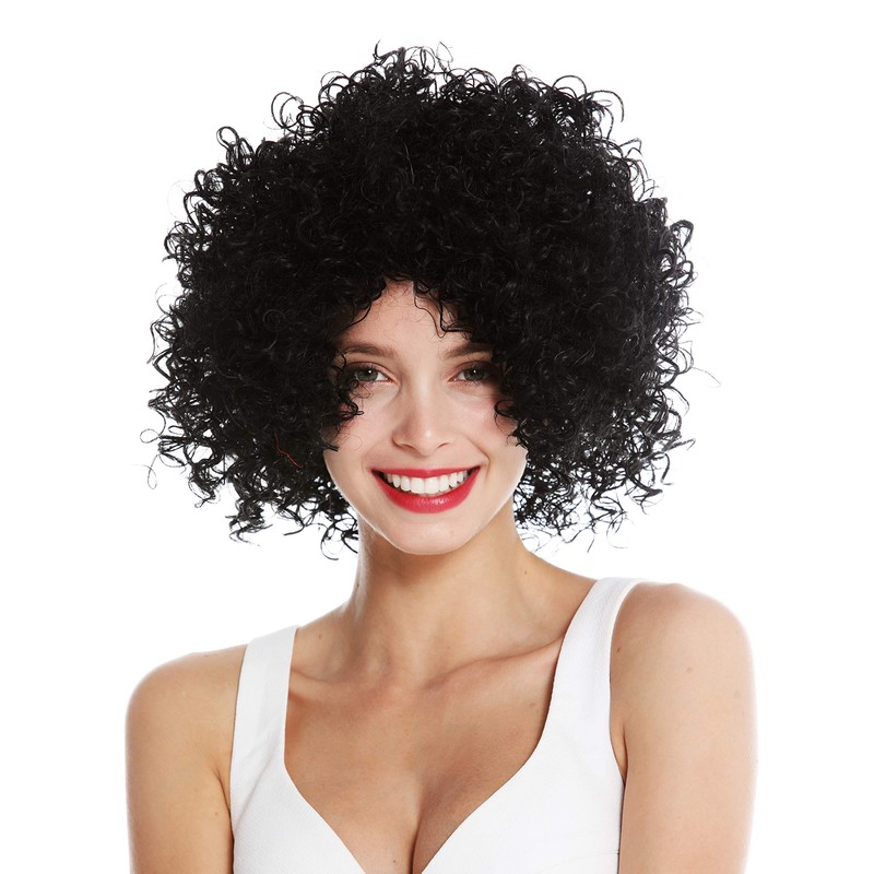 - Eye-catching wild and sexy, very frizzy curly women's wig in velvet black.