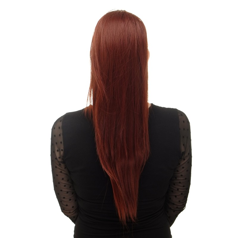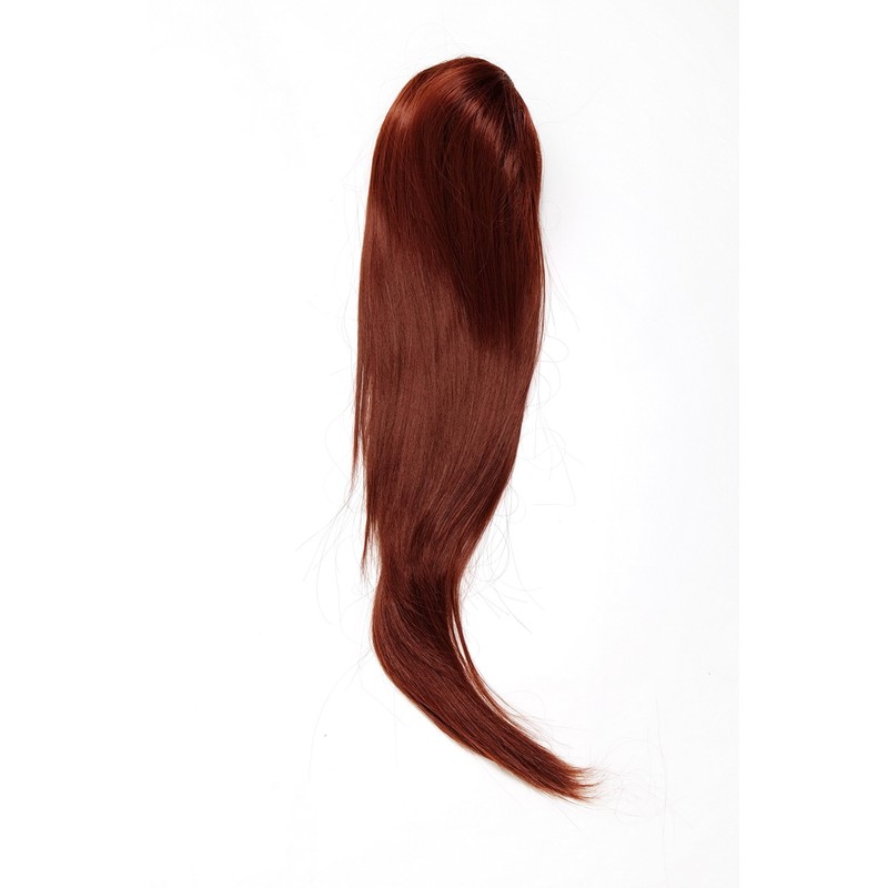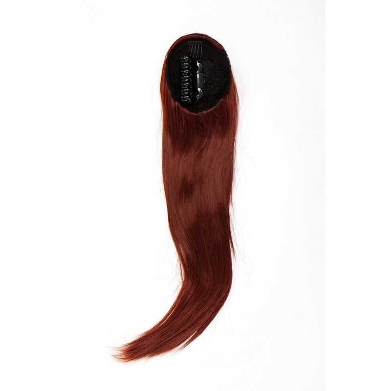 - Gold Auburn voluminous but smooth falling hairpiece made of high quality synthetic fibre, which is pulled onto your own hair together with a system of mini butterfly clip, comb and elastic pull.