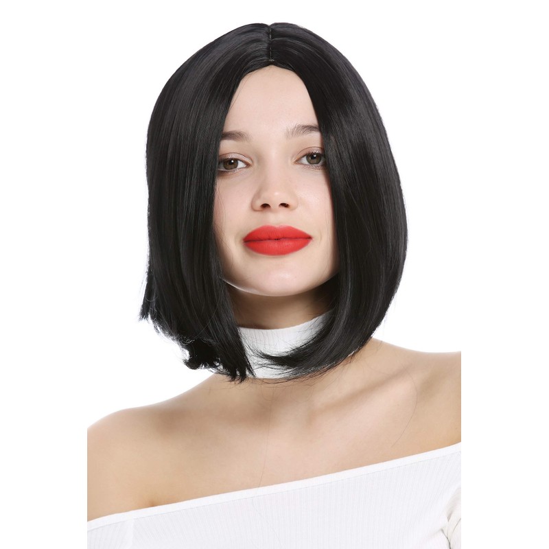 - Pretty sexy styled short hair wig in jet black. This longer, slightly fringed Choppy Bob is divided into two concave sides by a bold middle parting.