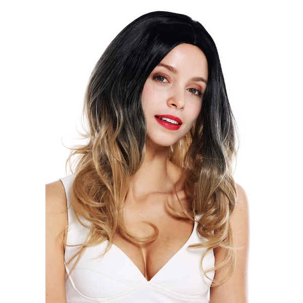 WIG ME UP - ZM-1700-18-4B women's quality wig long voluminous wavy middle parting ombre blonde dark brown hairline