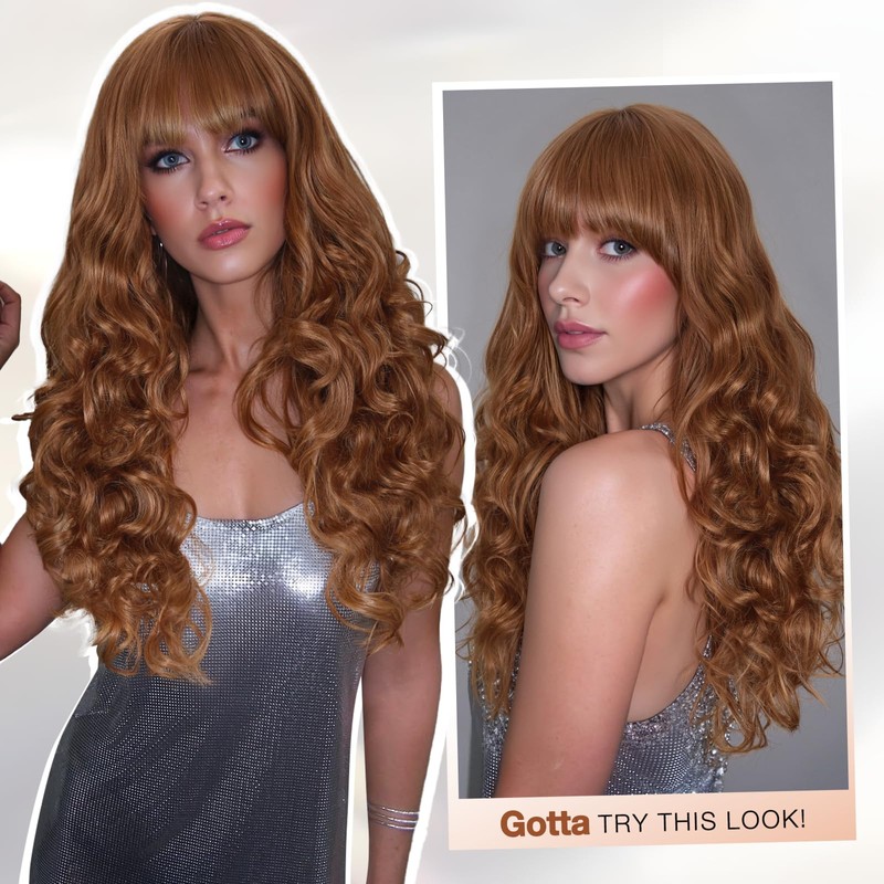 - 【Versatile for Any Occasion】Long wavy layered wig with bangs fit for any qccasion, whether for daily wear, work, parties, weddings, or themed events. And easily style it into ponytails, messy buns, or create unique shapes with its freely curled body.