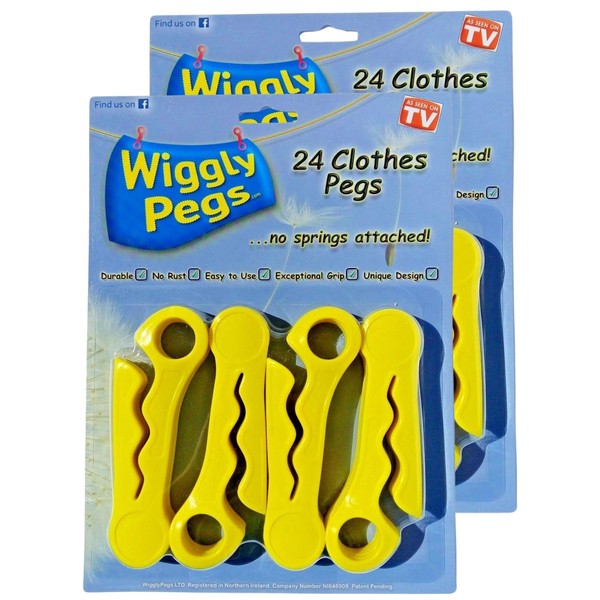 WigglyPegs Clothes Pegs - No Spring - Easy Grip Arthritis friendly - Durable, Exceptional Grip, Stops Clothes Sliding on Clothesline, Washable, Premium Quality, Storm proof. (2 x 24 Pack (48 Pegs))