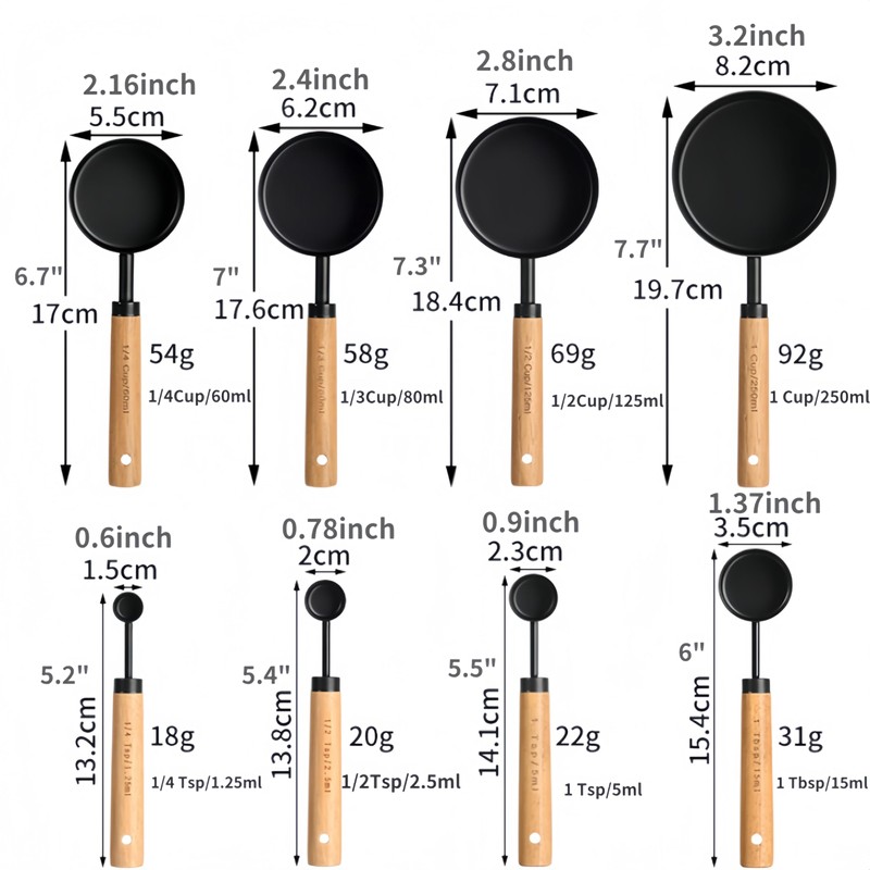 - 【Maintenance & Guarantee】: To maintain the quality of your measuring cups and spoons set, avoid using harsh soaps or soaking the wooden handles for long periods. Should you encounter any issues or be dissatisfied, please contact us. We are committed to your satisfaction and will provide the best solution. Enjoy the enduring beauty and functionality of our measuring set in your kitchen for years to come.