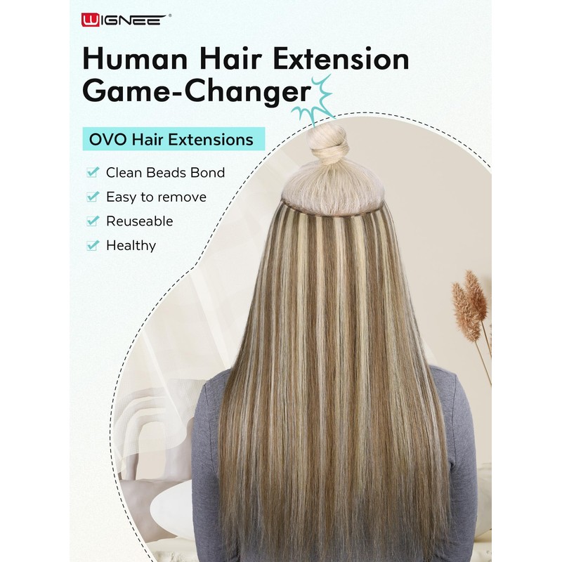 WIGNEE OVO 1PC 50g Double Layered Remy Human Hair Extension – 18 Inch Hand-Tied and PU Weft, 13 Inch Wide, Seamless Cuttable Blonde Hair with Micro Beads, Glueless Install for White Women