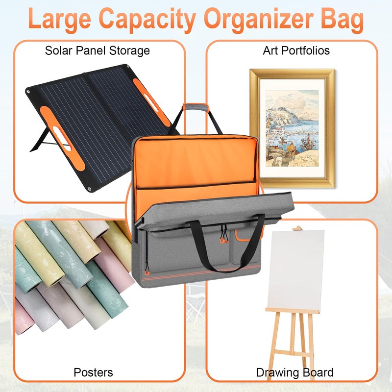 - Wide Use: Suitable for camping, RV travel, vacationing, outdoor adventure, hiking and other outdoor activities, solar panel bag ensures that your solar panels stay in tip-top shape. It can also store art portfolios, posters, folding chairs and other items
