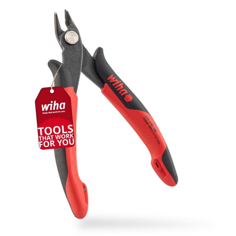 - The Wiha electric wire pliers (wide shape) are ideal for completely flush cutting of soft wires for electronics technicians in electronics thanks to the wad-free cutting edge.
