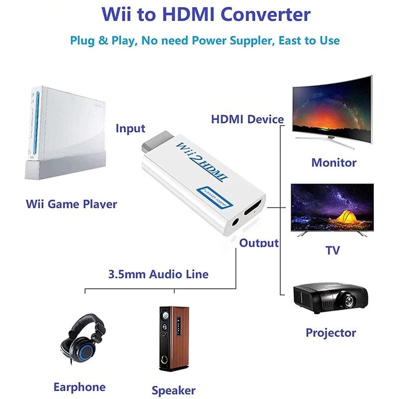 - The Wii to HDMI adapter converts your Wii video and audio output to full digital HDMI format,no transmission loss .(No included HDMI cable)