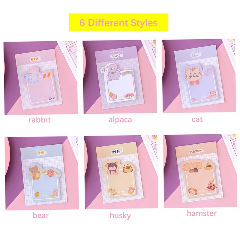 • 【Adorable Cartoon Design】These cartoon animal sticky notes are designed in 6 different styles, including rabbit, husky, cat, alpaca, hamster, bear. Interesting design with pastel colors.