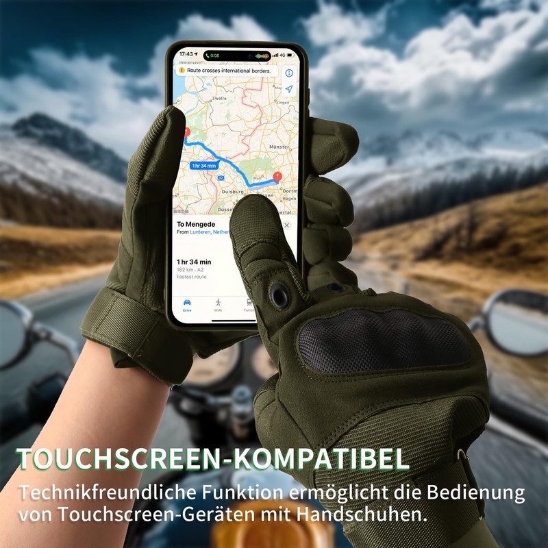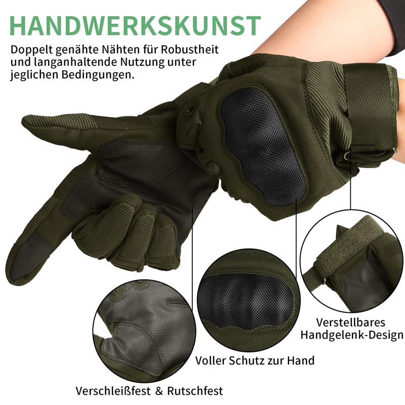wiipara Tactical Gloves, Motorcycle Gloves, Men's Winter Breathable Motorcycle Gloves with Protectors and Touch Screen, Tatical Gloves for Motocross, Quad, Moped, Mountain Biking, Hunting (Green)